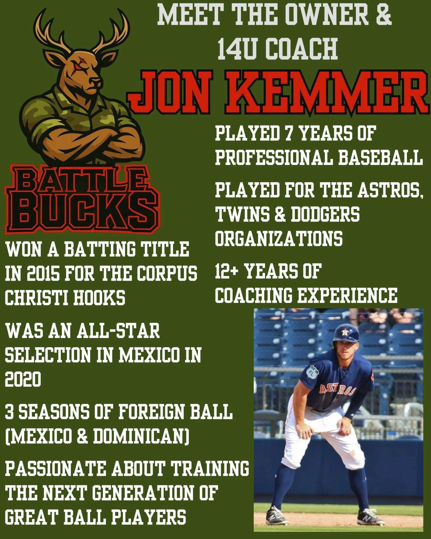 We are one of the newest Houston area select baseball team organizations. We currently offer 12U and 14U AAA/Major teams with more age groups coming in 2026. We are lead by head coach, Jon Kemmer.